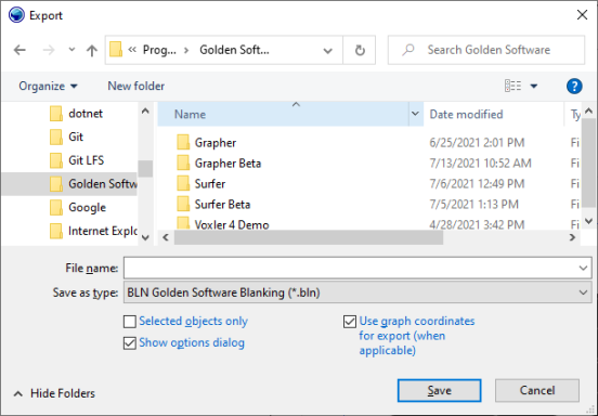 Check the Show options dialog box to display the Export Options dialog for the selected Save as type. If the Show options dialog option is selected when the Save button is clicked, the Export Options dialog appears. The Scaling page and Size and Color page of the Export Options dialog is uniform. Additional pages in the Export Options dialog may be available dependent on the export format type.