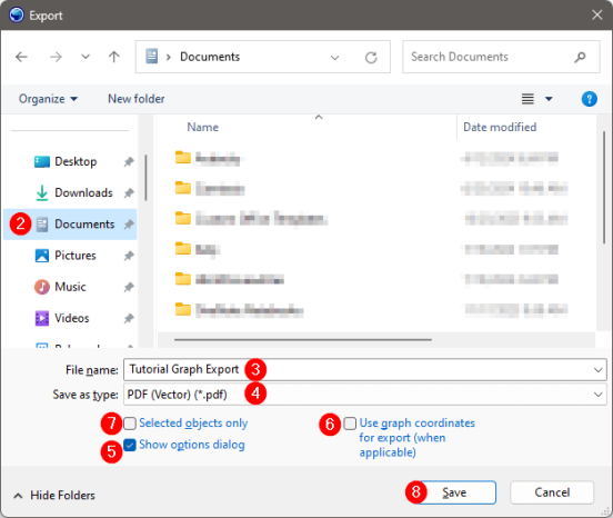 - Type Tutorial Graph Export into the File name field in the Export dialog.
